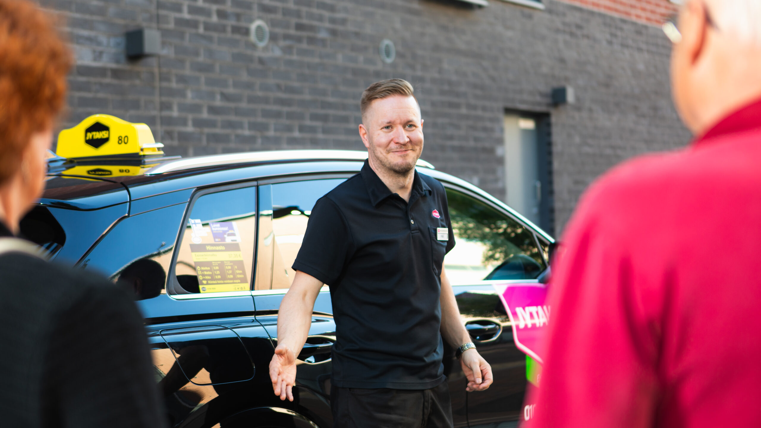 Tilaa taksikyyti numerosta 0100 6900 (puhelun hinta 2,37 € / vastattu puhelu + 1,52 € / min + pvm/mpm). Jos puolestaan olet taksitolpan lähettyvillä, voit napata JYTAKSIn suoraan taksijonosta – tunnistat sen pinkistä logosta ja JYTAKSI-kuvusta.